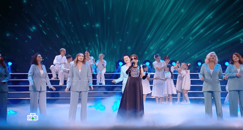 Гибридный музыкальный спектакль с наставниками и членами жюри, в формате шоу—программы.